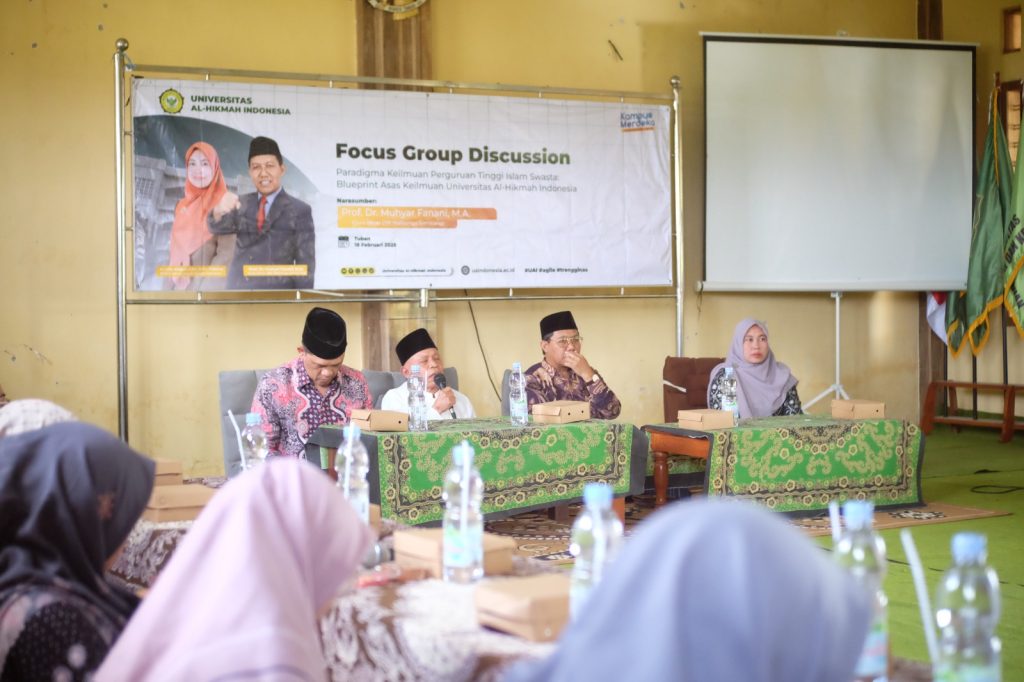 Pada hari, Selasa, 18 Februari 2025 bertempat di Aula Gedung A Universitas Al-Hikmah Indonesia, telah diselenggarakan Focus Group Discussion (FGD) Paradigma Keilmuan Perguruan Tinggi, yang dikuti kurang lebih 40 dosen UAI Tuban dan sebagian Dosen Pascasarjana UIN Walisongo Semaran. FGD yang mengambil tema: Paradigma Keilmuan Perguruan Tinggi Islam Swasta: Blueprint Asas Keilmuan Universitas Al-Hikmah Indonesia ini, menghadirkan narasumber Prof. Dr. Muhyar Fanani, M.A, Guru Besar UIN Walisongo Semarang, K.H. M. Husnan Dimyati, selaku Pengasuh Pesantren Al-Hikmah Singgahan Tuban sekaligus Ketua Yayasan Al-Hikmah Tuban, Dr. Laily Hidayati, S.Psi., M.Psi. Psikolog, selaku Rektor UAI Tuban dan moderator Dr Muhammad Aziz, S.ThI., M.H.I.