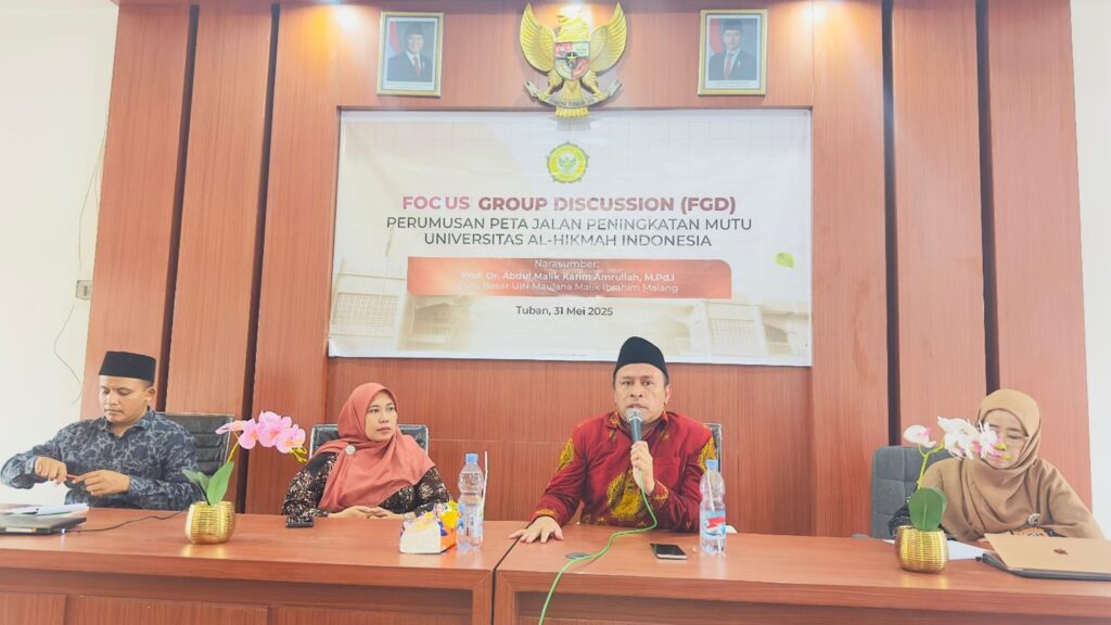 “Mengelola Kampus harus Berbasis Mutu, Bukan Berbasis Akreditasi” pesan menohok tersebut disampaikan oleh H. Abdul Malik Karim Amrullah, Guru Besar Universitas Islam Negeri Maulana Malik Ibrahim Malang pada saat menjadi pemantik kegiatan Focus Group Discussion (FGD) dengan topik “Perumusan Peta Jalan (ROADMAP) Peningkatan Mutu Universitas Al-Hikmah Indonesia” yang diadakan oleh Universitas Al-Hikmah Indonesia, Tuban, pada Sabtu, 31 Mei 2025.